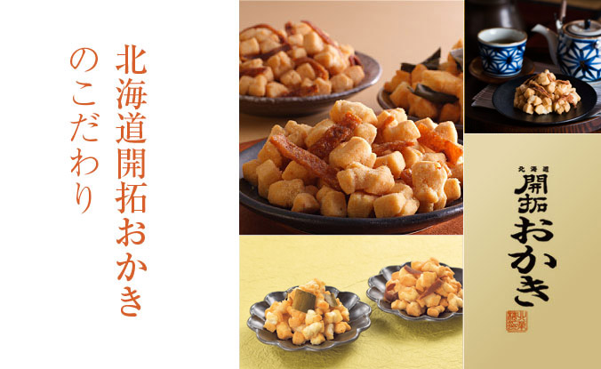 昔ながらの製法で、米研ぎ、蒸し、餅つき、熟成、乾燥、揚げ、味付けに至るまで、職人が7日間かけておつくりしていることから「なのかおかき」とも呼ばれています。 餅に北海道の海の幸を練り込み、味わい豊かに香ばしく仕上げました。