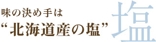 味の決め手となる塩は、豊かな北の海の海底でろ過された海水100%の北海道産の塩を使用。マグネシウム・カリウムなど天然ミネラル成分がとても豊富です。