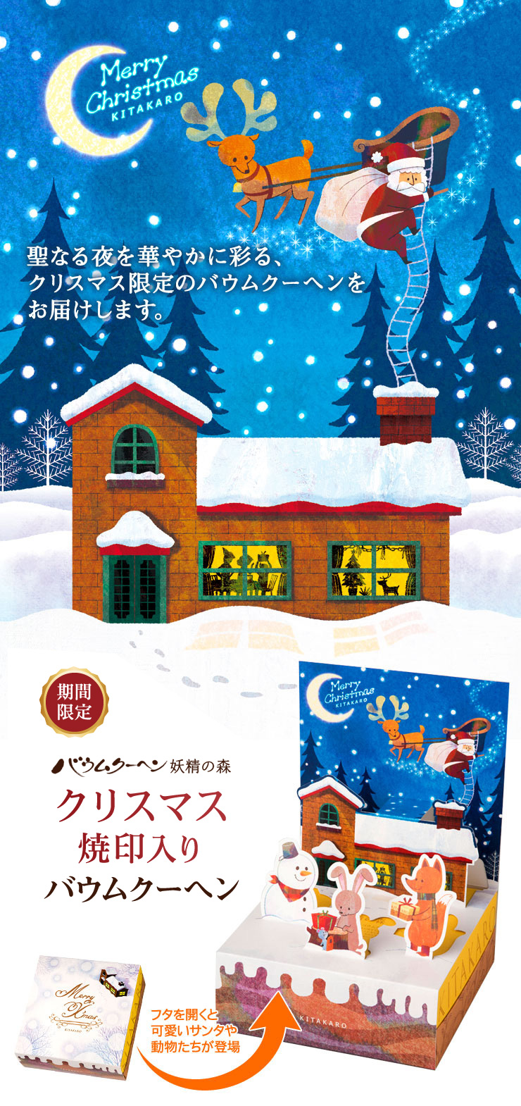 [期間限定]バウムクーヘン「妖精の森」クリスマス焼印入り ホール・高さ 4cm
