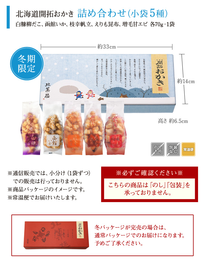 [期間限定]北海道開拓おかき 詰め合わせ(小袋5種)冬パッケージ