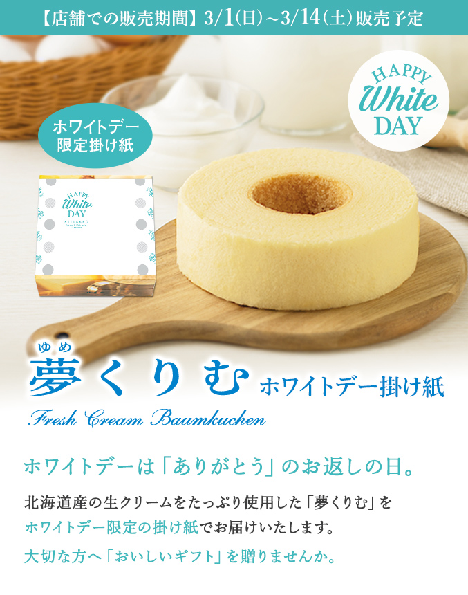 [予約商品]バウムクーヘン「夢くりむ」ホワイトデー掛け紙 ホール・高さ4cm
